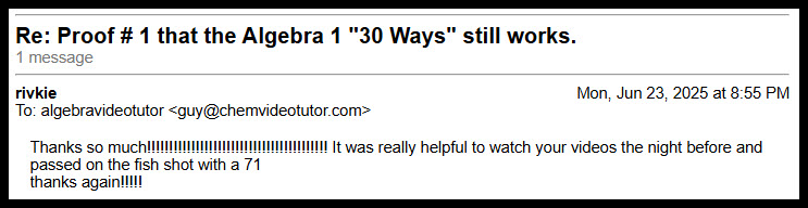 Read LessThank you so much.!!!! I got A 72 on the algebra regents after watching your videos. I can Now graduate on time in June ‘!